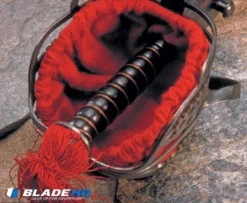 - Leather covered wood scabbard provides a safe storage option.