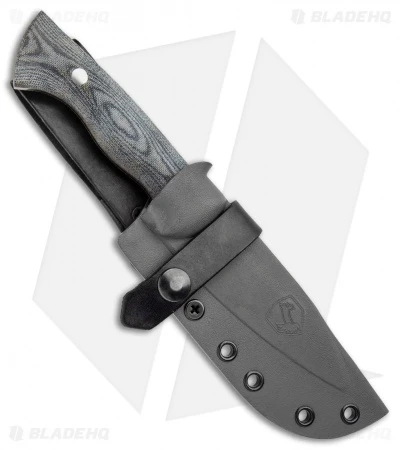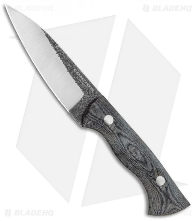 - Gray micarta scale handles with a full steel tang.