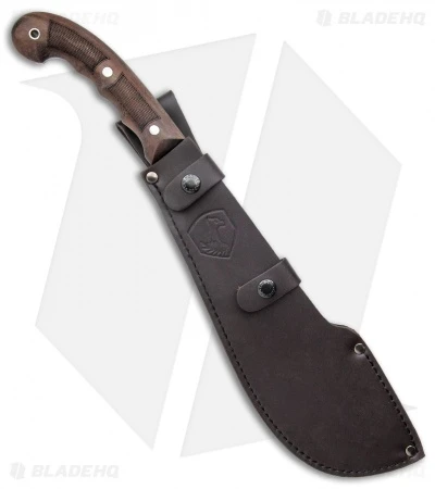 The Condor Departure Bolo Machete has a wide, sweeping blade made from 1075 high carbon steel with a black powder coating. Its handle is made from walnut wood and the sheath is black leather. The Departure Bolo Machete is anxious to assist you on your next outdoor adventure.