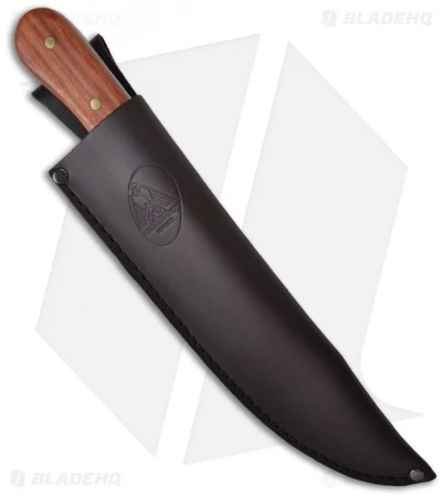 The Hudson Bay is a superb camp knife. Large 3/16″ thick full tang 1075 high carbon steel blade with an epoxy black powder coat. Thick, rounded riveted hardwood handle. The Hudson Bay comes with a premium leather sheath.