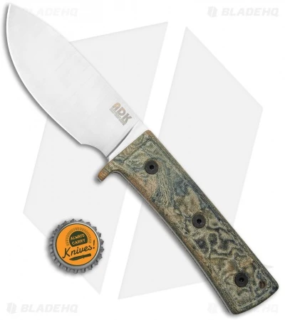 The Keene Valley Hunter from Ontario Knife Company is an ideal companion for hunting and camping trips. It has a full-sized micarta handle with a finger guard, and a 420HC stainless steel blade with a sweeping belly to help in skinning.