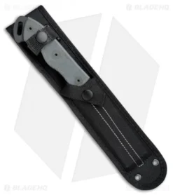The TFI Ranger from Ontario Knives features a stout 1/4″ thick 5160 steel blade, black powder coated for stealth and corrosion resistance. The handle is outfitted with black Micarta scales that provide a sure grip. Full-tang design with extended pommel and lanyard slot. The Ranger TFI comes with a MOLLE compatible heavy duty nylon sheath. This one has a white logo.