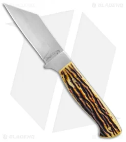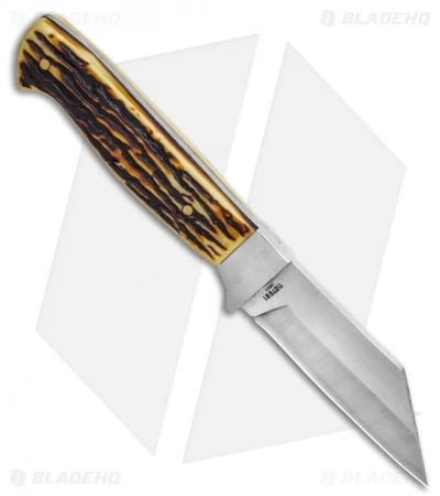 - Wharncliffe fixed blade knife with stag handle.