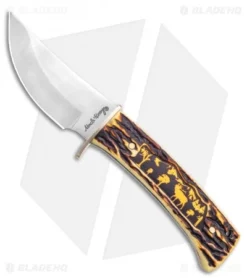 - Drop point fixed blade knife with gut hook.