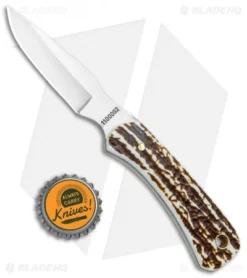 Pick up a solid camping companion with the Uncle Henry Next Gen fixed blade. This model sports durable sim stag handle scales and a satin finished stainless steel blade. Upgrade your outdoor gear today with Uncle Henry.